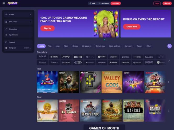 With a massive library of offered games and an extensive lineup of bonuses and promotions, Opabet Casino aims to provide players with an unforgettable gambling and sports betting experience. Online slots, live dealer games, crash games, and table games are all here, and there are thousands of great options. On top of everything, the brand accepts cryptocurrencies like Bitcoin for deposits and withdrawals.