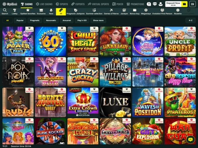 Optibet Casino is powered by Microgaming, Net Entertainment, Playtech, 1x2gaming, Barcrest, Big Time Gaming, ELK Studios, Evolution Gaming, Habanero Systems, iSoftBet, lightningboxgames, Novomatic, Oryx, Play'n GO, playson, Quickspin, Rabcat, Relax Gaming, Thunderkick, Yggdrasil, Endorphina, Wazdan, Realistic Games, Betgames, Stakelogic, Pragmatic Play, Nolimit City, Felt Gaming, Red Tiger Gaming, IGT, Air Dice, Red Rake Gaming, Fantasma Games, FunFair, SYNOT Games, Kalamba, Platipus Gaming, Skywind, Triple Edge Studios, Northern Lights Gaming, Evoplay, Stormcraft Studios, Switch Studios, Electric Elephant Games, Pocket Games Soft, Bulletproof Games, All41 Studios, Gluck Games, Gameburger Studios, Pulse 8 Studios, Slot Factory, Neon Valley Studios, Golden Rock Studios, Spearhead Studios, Swintt, Shuffle Master, SpinPlay Games, HungryBear Gaming, Real Dealer Studios, GONG Gaming, Blue Guru Games, Lady Luck Games, On Air Entertainment, Buck Stakes Entertainment, Elysium Studios, Eurasian Gaming, Games Global, Amusnet Interactive, Wizard Games, Bally Technologies, Blueprint Gaming, EveryMatrix, Greentube, Leander Games, Merkur Gaming, NeoGames, NextGen, NYX Interactive, Pariplay, Push Gaming, Tom Horn Gaming, WMS, Inspired Gaming, Gaming Realms, SG Interactive, Gamomat, Red7Mobile, CORE Gaming, Scientific Games, Side City Studios, Reel Time Gaming, Authentic Gaming, BF Games, Bally Wulff, Iron Dog Studio, Old Skool Studios, Foxium, Betdigital, Just For The Win, Reflex Gaming, Storm Gaming Technology, PearFiction Studios, Wild Streak Gaming, Slingshot Studios, Fortune Factory Studios, Jade Rabbit Gaming, Green Jade Games, STHLM Gaming, RubyPlay, 4ThePlayer, AvatarUX, Gamevy, Crazy Tooth Studio, Pirates Gold Studios, ReelPlay, Japan Technicals Games, AGS Interactive, Alchemy Gaming, Snowborn Games, Boomerang Studios, Hacksaw Gaming, Max Win Gaming, Gold Coin Studios, Bang Bang Games, Half Pixel Studios, Arcadem, Slotmill, Peter And Sons, Eurostar Studios, Aurum Signature Studios, Armadillo Studios, Lucksome Gaming, FlipLuck, Area Vegas, RAW iGaming, Wishbone Games, Spribe, Circular Arrow, Print Studios, HammerTime Games, Four Leaf Gaming, INO Games, Nailed It! Games, Neko Games, Reel Kingdom, Oros Gaming, JVL, Light & Wonder and Kitsune Studios, and the casino's games are available for play through a web-based platform, meaning that you do not have to download any software to test your luck. The casino also has a mobile site for players who wish to play on their smartphones or tablets.
