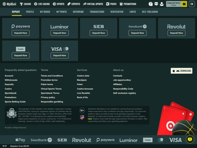 Optibet has casino and sportsbook. Even i bet sports every day but i never use Optibet because odds usually one of the lowest in the market. Also they even dont offer bet types I like to bet. But casino is pretty solid and i play here quite often especially for a reason that withdrawal comes in few minutes.