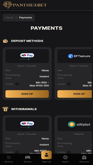 Made purposefully for the players residing in South Africa, Pantherbet online casino proves to be a popular pitstop for players who are looking for swift action and top – notch gaming experience in a secure and fair environment.