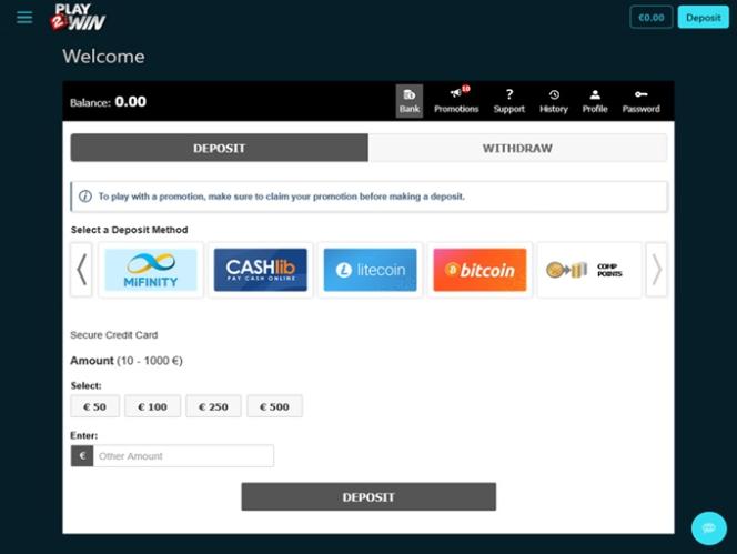 i got a 22 euro no deposit bonus at play2 win casino. you have to convert this 40 times so a total of 880 euros unfortunately i didn't manage to meet the conditions. The casino itself is ok, but it's not really special that I would deposit my money there. I spoke to the support, they are really very nice and helpful. I have nothing bad to say about the play2 win casino, but I can't say anything particularly positive either. It is a casino that doesn't really stand out from other betsoft casinos
