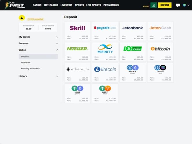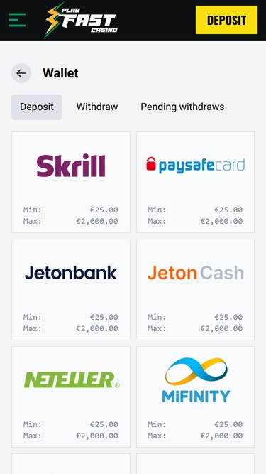 - PlayFast may refuse to accept any deposit without any explanation whatsoever.