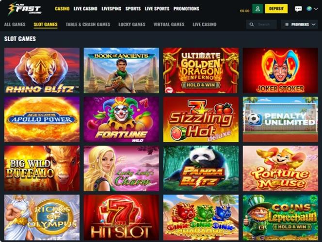 PlayFast has a good slot section packed with plenty of popular titles: Buffalo Rampage, Lucky Mr. Patrick, Magical Amazon, Book of the Divine, Book of Clovers, Goddess of Lotus, Joker Win, 4 Horseman II, Age of Pirates, Braindead, Mancala Quest, Crystal Mine, Portal Master, Starwins, Coco Tiki, Cherry Bombs, Zero Day, Noche Oscura, Wicked Heart, Monster Thieves, Copper Dragon, Club Garage, Gun's Heat, Voodoo Spells, #Casino Night, Green&Greedy, Blood Romance, Rage of Zeus, Western Tales, Wildfire Fruits, Wacky Monkey, 1 Reel Egypt, Trojan Tales, Book of Champions Reloaded, Winners Gold, Book of the divine Reloaded, Poseidon's Rising, Book of Demi Gods III, Beer Collection, Fruits Collection, Egyptian Eclipse,Titan's Rising, Book of Champions, African Rampage, Story of the Samurai, Queen of Fire, Aztec Spell and more.
