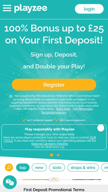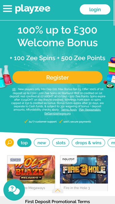 Playzee Casino is powered by Microgaming, Net Entertainment, 1x2gaming, Barcrest, Big Time Gaming, ELK Studios, Evolution Gaming, EYECON, Ezugi, lightningboxgames, Novomatic, Play'n GO, Relax Gaming, Thunderkick, Wazdan, Realistic Games, Booming Games, Stakelogic, Pragmatic Play, Nolimit City, Red Tiger Gaming, Air Dice, Spinomenal, Red Rake Gaming, Fantasma Games, FunFair, SYNOT Games, Revolver Gaming, Skywind, Spinmatic, Triple Edge Studios, BGAMING, Northern Lights Gaming, Stormcraft Studios, Switch Studios, Electric Elephant Games, Pocket Games Soft, All41 Studios, Gluck Games, Gameburger Studios, Slot Factory, Neon Valley Studios, Golden Rock Studios, Swintt, Shuffle Master, SpinPlay Games, HungryBear Gaming, KA Gaming, GONG Gaming, Blue Guru Games, On Air Entertainment, Buck Stakes Entertainment, Design Works Gaming, Elysium Studios, Games Global, Ainsworth, Bally Technologies, Blueprint Gaming, Endemol Games, Greentube, Leander Games, Merkur Gaming, NYX Interactive, Push Gaming, WMS, Inspired Gaming, Gaming Realms, SG Interactive, Red7Mobile, Scientific Games, Side City Studios, Reel Time Gaming, Authentic Gaming, Bally Wulff, Iron Dog Studio, Foxium, Betdigital, Just For The Win, Storm Gaming Technology, PearFiction Studios, Apollo Games, Wild Streak Gaming, Slingshot Studios, Fortune Factory Studios, RubyPlay, 4ThePlayer, AvatarUX, Gamevy, Crazy Tooth Studio, NetGaming, ReelPlay, AGS Interactive, Alchemy Gaming, Plank Gaming, Black Pudding Games, Snowborn Games, Boomerang Studios, Hacksaw Gaming, Max Win Gaming, Gold Coin Studios, Bang Bang Games, Half Pixel Studios, Slotmill, Peter And Sons, Aurum Signature Studios, Armadillo Studios, Lucksome Gaming, Area Vegas, RAW iGaming, Wishbone Games, Spribe, Print Studios, Gaming Corps, HammerTime Games, Four Leaf Gaming, INO Games, Nailed It! Games, Live 5, Neko Games, Reel Kingdom, Oros Gaming, Light & Wonder and Octoplay and the games are offered on an attractive web-based platform. The site is easy to navigate, and it looks clean whether you play on your desktop or use the mobile platform that’s also supported.