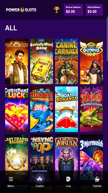 Power Slots Casino is powered by Microgaming, Net Entertainment, Playtech, 1x2gaming, Barcrest, Big Time Gaming, ELK Studios, Evolution Gaming, EYECON, lightningboxgames, Play'n GO, Rabcat, Thunderkick, Wazdan, Pragmatic Play, Nolimit City, Red Tiger Gaming, Spinomenal, Skillzzgaming, Fugaso, Skywind, Triple Edge Studios, Northern Lights Gaming, Stormcraft Studios, Switch Studios, All41 Studios, Gluck Games, Gameburger Studios, Pulse 8 Studios, Neon Valley Studios, Shuffle Master, SpinPlay Games, Real Dealer Studios, GONG Gaming, On Air Entertainment, Buck Stakes Entertainment, Games Global, 2by2 Gaming, Blueprint Gaming, Games Warehouse, NextGen, ProgressPlay, Tom Horn Gaming, WMS, Inspired Gaming, SG Interactive, Red7Mobile, CORE Gaming, Scientific Games, Reel Time Gaming, Iron Dog Studio, Old Skool Studios, Foxium, Betdigital, Just For The Win, PearFiction Studios, Wild Streak Gaming, Slingshot Studios, Fortune Factory Studios, Gamevy, Crazy Tooth Studio, ReelPlay, Alchemy Gaming, Black Pudding Games, Snowborn Games, Hacksaw Gaming, Gold Coin Studios, Half Pixel Studios, Eurostar Studios, Aurum Signature Studios and Lucksome Gaming, which provides its games through a web-based platform. A mobile site is also available for those who want to play casino games on their mobile devices.Blackjack