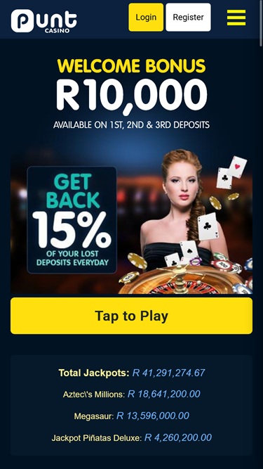 I registred at punt casino mid last year to take advantage of the free R100 no deposit bonus they were offering and although was not at all lucky with the bonus I have found myself making a couple of deposits at this casino since then , mainly for the very low deposit limits which sit at only R25 minimum deposit , The casino is well laid out and support are very friendly and helpful , Its owned by the same guys who own Yebo casino , I am yet to request a withdrawal from them though so I cannot comment on the payout speed but according to support it can take up to five working days which is terrible in my opinion and something they should look at speeding up , aside from that its a typical RTG casino with all the slots and games the software provider offers both on the download version or Instant play desktop version , the casino also hosts a mobile site, the bonus offers are very generous with offers available weekly along with a cashback bonus on losses along with a comp point system which can be redeemed for cash based on your wagering