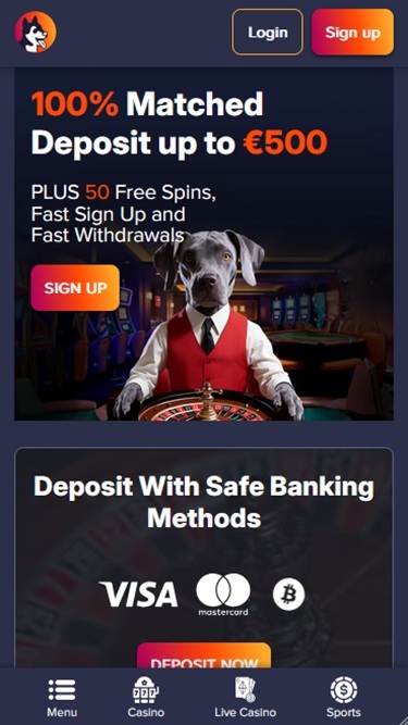 As you would expect from the brand’s name, this casino features a theme that revolves around puppies and dogs, which gives the website a ton of personality and flair, especially considering there is a ton of original artwork and video effects present. The user interface is easy to navigate, and players will have no issues accessing all the pages and sections.