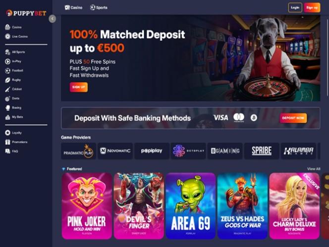 PuppyBet is a modern gambling site that caters to both casino players and sports bettors alike. The brand offers an extensive selection of gaming options, including online slots, live dealer games, table games, and crash games, as well as numerous sports betting options. Players will have the pleasure of claiming multiple promotions and bonuses, as well as utilizing crypto availability to deposit and withdraw funds using modern methods like Bitcoin.