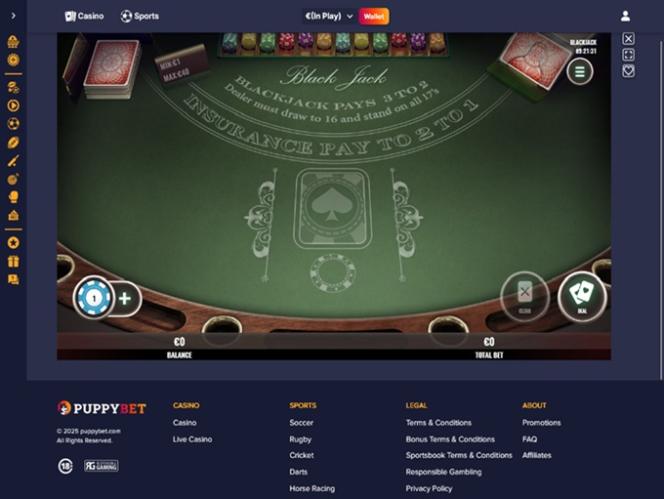 Once you’ve played through enough online slots and you’re looking for something a bit more complex, you’ll be able to sink your teeth into PuppyBet’s selection of traditional table games like poker, roulette, blackjack, and baccarat, which can be experienced in both live dealer and computer formats, with the most popular variations being Grand Bonus Blackjack, Hyper Speed Baccarat, Royal Roulette, and Poker 6+.