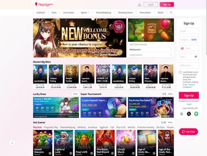 Queen Casino is an online betting site that was founded in 2018 and is run by Class Innovation B.V. The casino is focused on the Asian gaming market, and brings with it a full slate of slots, table games, and live dealer titles to players. The site does offer a decent choice for punters in the region, although those in Europe or other regions have much better options to choose from.