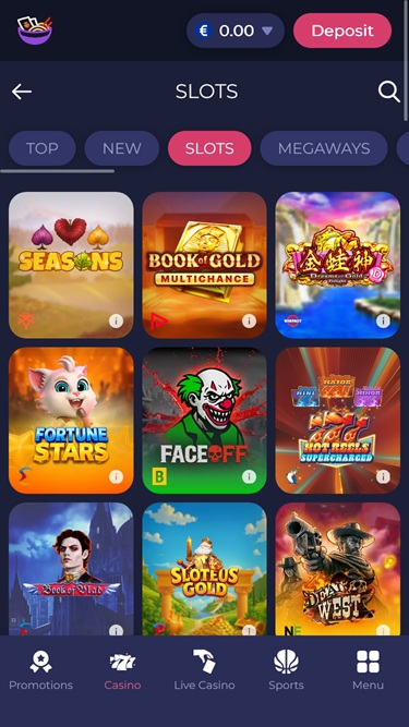Some of the available main menu categories are Top, New, Slots, Megaways, Bonus-buy, Hold And Win, Jackpots, Tables… They are all packed with top-rated online casino games.