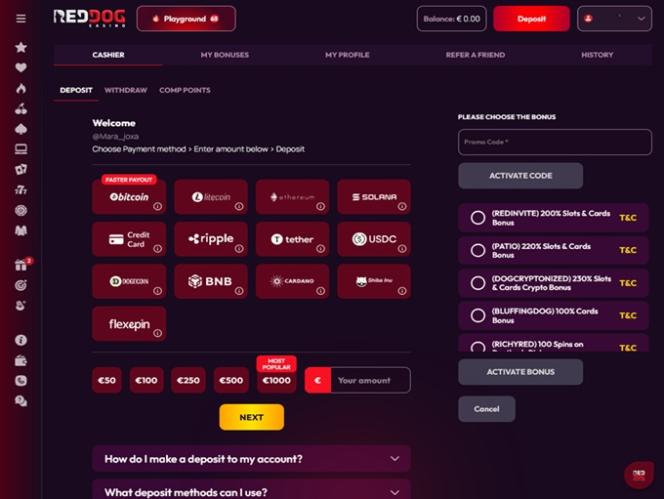 OKI signed up for Red Dog a long time ago. I do believe this is a unique casino site. They send out promotions often. They also provide incentives for you to complete x amount of tasks. I think the deposit minimum is fair. I haven't made a withdrawal from Red Dog so I can't comment on that.