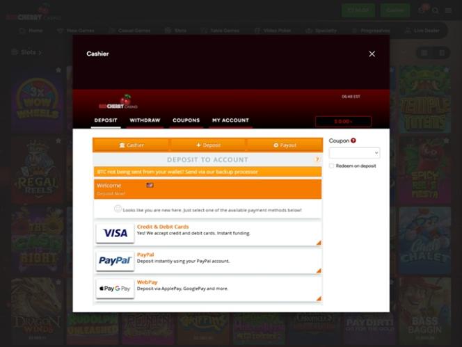 Below you’ll find the different banking options at RedCherry Casino, including the deposit and withdrawal options.