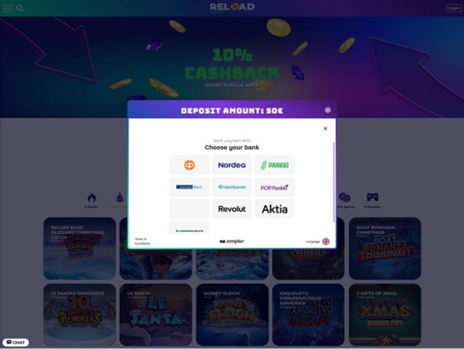 This online casino does not offer too many bonuses and promotions. Newcomers can count on a welcome bonus and together with all other players on cashback. There is also a weekly giveaway and Drops & Wins available. Reload Casino reserves the right to deny a player from participation in any kind of promotion.