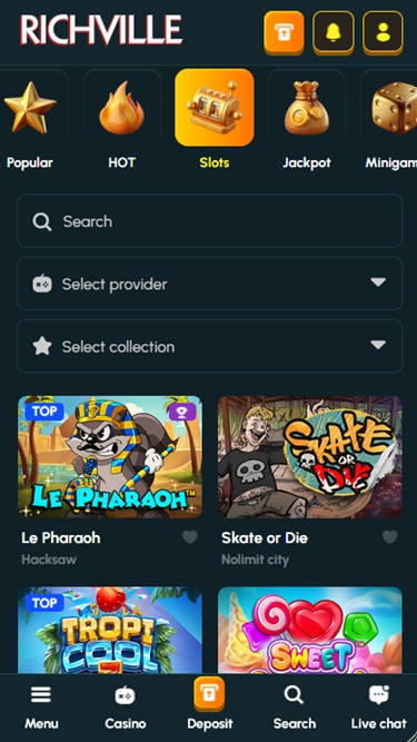 Instant crash games like Instant Lucky 7, Skyward, Colors, Lines, Blocks, Aviatrix, Plinko, HiLo, Aviator, Mines, Hamsta, and Neko are also very popular choices for Richville players, and we highly suggest giving them a try if you prefer playing games with simpler rules and features.