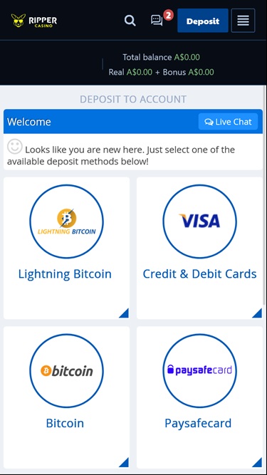 When it comes to the Cashier and banking choices at Ripper, there are various payment methods for deposits and withdrawals. This USA friendly gaming site supports cryptocurrency as well as other options such as payment cards and many e-wallets popular with punters.