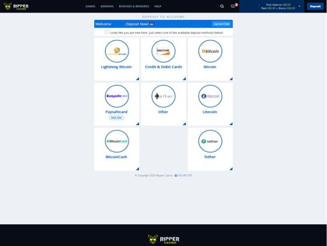 Banking options at Ripper Casino