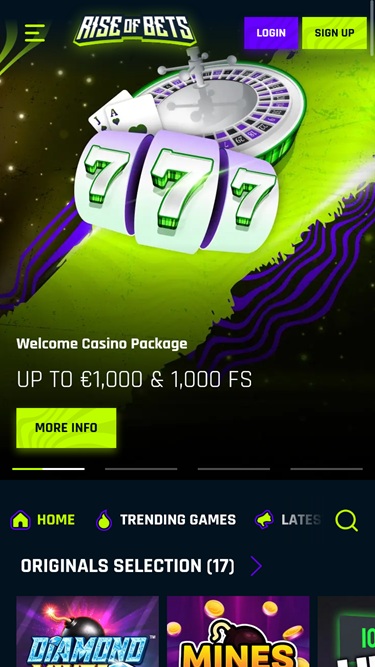 Rise of Bets Casino is a fully-fledged online casino that aims to provide its players with a complete real-money gambling experience. Players can browse through thousands of unique casino games, including numerous online slots, table games, live dealers, and a handful of original releases. Additionally, the website features a massive sportsbook filled with numerous sports betting options and virtual sports.