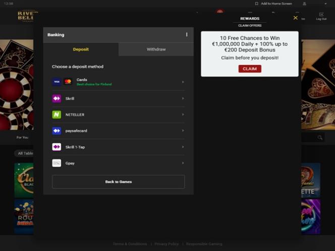 I had an account at RiverBelle a few years ago and shut it down, I never won, and I put in a fair amount of money I thought. I now decided to give it another chance, I belong to its sister casinos and have been lucky at them.