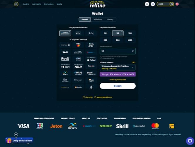 Rollino Casino included an interesting offer for casino members that like to boost their gameplay with special promotions.
