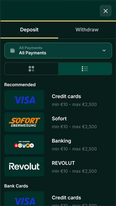 Although the casino supports bank wire transfers, popular cryptocurrency options, payment cards, and widely used e-wallets, some of these options will not be available to players depending on the country they are from, as certain banking methods are not available in all jurisdictions for online gambling. Make sure to check in advance whether your preferred payment option is at your disposal.