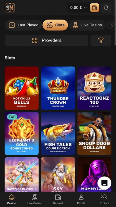 Taking a look at the top right corner you will find the usual - your profile settings, as well as the deposit button that lets you top up your account right away. Don’t worry, there’s also the search bar that will help you find your favorite casino games in no time, or favorite providers if you can’t decide on your favorite game!