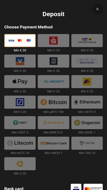 When it comes to payment methods you can use for deposits and withdrawals, it is safe to say that you should have no issues finding an option to your liking. Whether you are into well-trusted methods like Visa and MasterCard, eWallets like Skrill and Neteller, or even consider yourself a crypto enthusiast, you are in for a pleasant surprise.