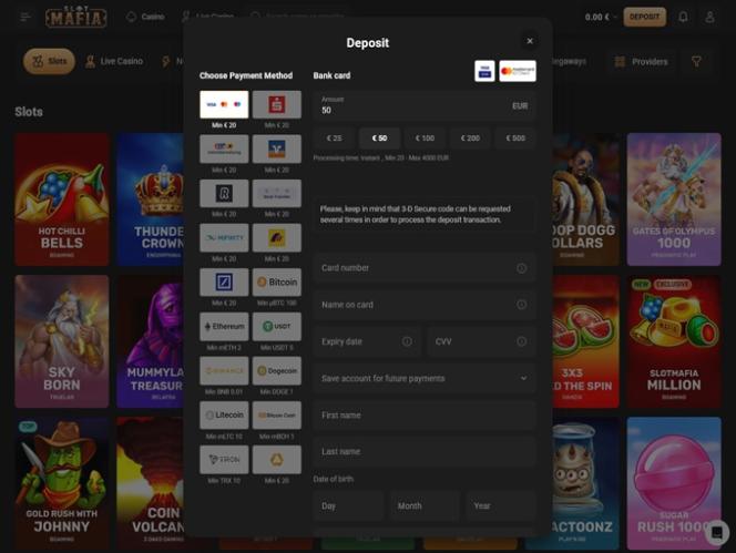 SlotMafia is a crypto-friendly casino operating under Curacao license boasting an impressive number of casino games. Whether you are looking to hit some one-armed bandits or prefer the thrill of table games like blackjack, roulette, poker or baccarat, odds are you will find something up your alley!