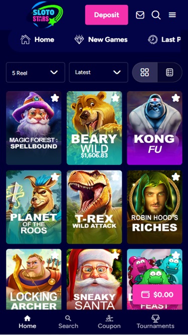 Sloto Stars Casino has not earned endorsement from the Wizard of Odds.