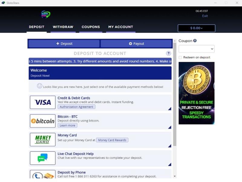 Just your standard RTG Casino. Standard layout, platform, in games to go along with it. Nothing really special to report here and I have no personal experience with the withdrawal process. If you played at one of these casinos you've played it all of them.. very very basic. If you've got a free bonus it's definitely worth a try. Otherwise, it's probably not worth your time playing here if you've played it another RTG Casino.