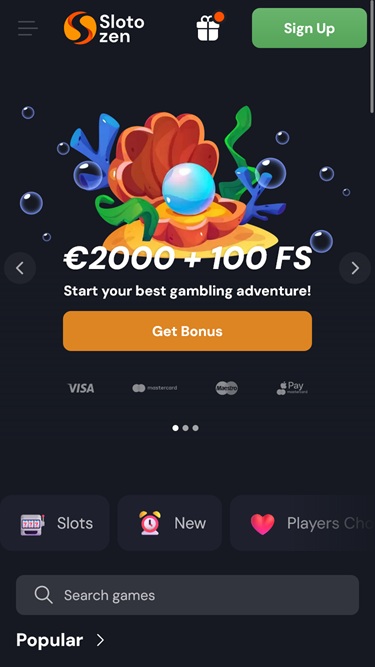 Slotozen is an online gambling brand that has a platform designed to be simple and minimalistic. The casino is using a popular layout with a slideshow just below the page header. The slideshow, of course, presents the most attractive available promotional deals. The central part of the homepage is reserved for Slotozen’s massive gaming offer, and the footer area for extra info on casino services and rules.
