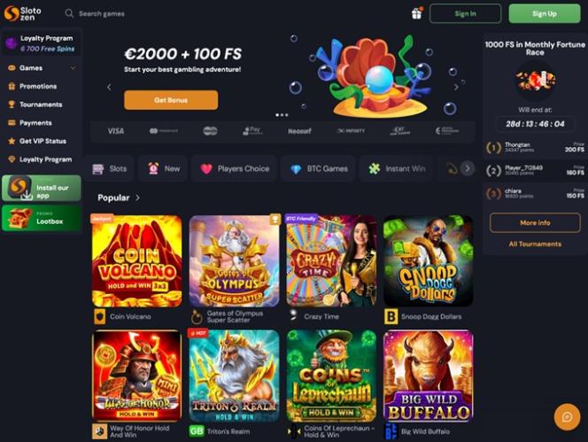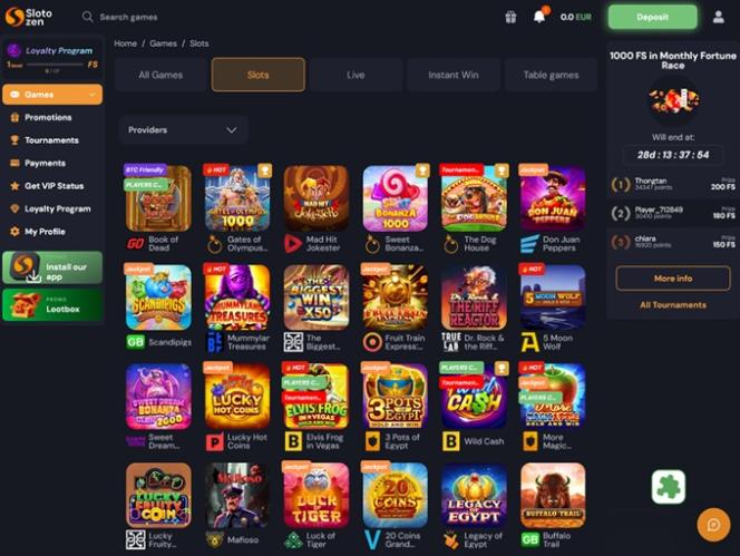 Slotozen does not offer a loyalty scheme in its classical sense but there is a tournament option that has many similar features to a loyalty program. The players are collecting points in order to progress and climb the leaderboard.