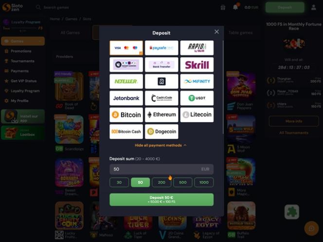 Slotozen casino is a cryptocurrency friendly online casino brand but all other available online casino payment methods such as payment cards, cash to code or online banking are funding options that can also be used.