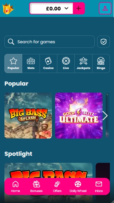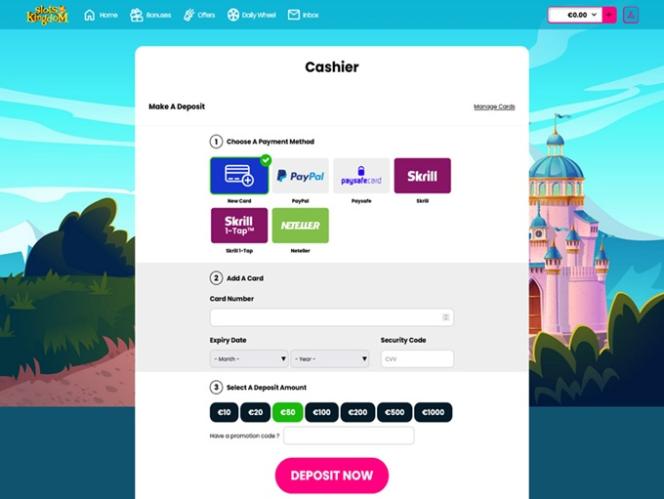 Slots Kingdom Casino is powered by Microgaming, Net Entertainment, Playtech, 1x2gaming, Barcrest, Big Time Gaming, ELK Studios, EYECON, lightningboxgames, Oryx, Play'n GO, playson, Quickspin, Saucify, Thunderkick, Wazdan, Realistic Games, Booming Games, Pragmatic Play, Nolimit City, Red Tiger Gaming, Spinomenal, Red Rake Gaming, Fantasma Games, Spin Games, Triple Edge Studios, Northern Lights Gaming, Stormcraft Studios, Switch Studios, Bulletproof Games, All41 Studios, Gluck Games, Gameburger Studios, Pulse 8 Studios, Neon Valley Studios, Golden Rock Studios, Shuffle Master, SpinPlay Games, Real Dealer Studios, GONG Gaming, Blue Guru Games, On Air Entertainment, Buck Stakes Entertainment, Design Works Gaming, Games Global, 2by2 Gaming, Ainsworth, Ash Gaming, Bally Technologies, bluberi, Blueprint Gaming, Jumpman Gaming, Leander Games, Merkur Gaming, NextGen, Tom Horn Gaming, Inspired Gaming, Gaming Realms, Genii, SG Interactive, Gamomat, Red7Mobile, Scientific Games, Reel Time Gaming, Authentic Gaming, Iron Dog Studio, Old Skool Studios, Foxium, Betdigital, Just For The Win, The Games Company, Storm Gaming Technology, MetaGU, PearFiction Studios, Wild Streak Gaming, Slingshot Studios, Fortune Factory Studios, Jade Rabbit Gaming, 4ThePlayer, AvatarUX, Gamevy, Crazy Tooth Studio, ReelPlay, Alchemy Gaming, Rarestone Gaming, Snowborn Games, Boomerang Studios, Hacksaw Gaming, Max Win Gaming, Gold Coin Studios, Half Pixel Studios, Peter And Sons, Aurum Signature Studios, Lucksome Gaming, Area Vegas, RAW iGaming, Wishbone Games, HammerTime Games, INO Games, Nailed It! Games, Atomic Slot Lab, Neko Games, Reel Kingdom, Oros Gaming and Light & Wonder and is supplied via a web-based instant play platform. This means that the casino loads up directly through your web browser with no downloads required. The casino also fully supports mobile play, allowing you to access games on your smartphone or tablet.
