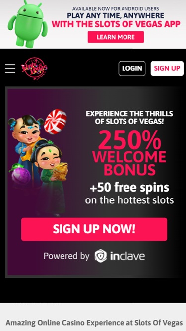 I am a fan of most of the inclave slots,they offer a plethora of bonuses both no deposit and deposit, most come with a reasonable playthrough requirement, I have personally been able to complete several playthroughs on almost 40 inclave casinos, however slots of Vegas in particular is the only one I am still waiting...