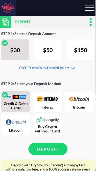 Scam! I deposited $100. Later that day, I won $600. They cancelled all the funds in the account saying my deposit transaction had an issue, and I needed to send proof of the deposit from my bank. I called the bank, and there was never an attempt to charge my card. My guess is they hold your deposit transaction and if you win anything, they cancel the deposit and all winnings. STAY AWAY!