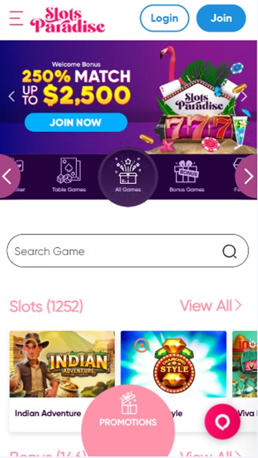 The only language option available here is English, which is understandable since this is a US-oriented platform. Furthermore, it’s important to note that SlotsParadise Casino’s entire catalog of games is fully optimized for the mobile gambling experience. Android and iOS devices are entirely supported, and no additional applications are required to download to enjoy your stay.