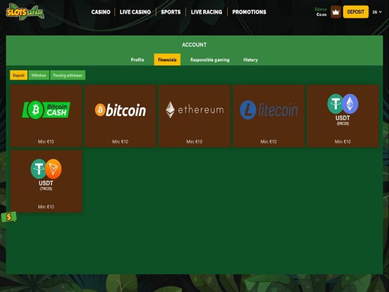 SlotsSafari supports various popular crypto banking methods, but in case you prefer to use other payment options note that, at this casino, it is possible to use only certain payment cards.