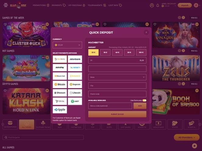 OKI found Slotvibe to be an average online casino with average promotions. There was nothing particularly interesting or exciting to keep me engaged. However, registering on the site was easy and I received the promised 30 free spins without any issues, although I didn't win anything from them.