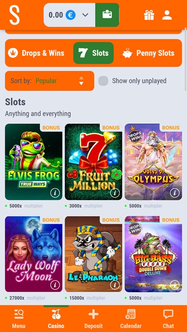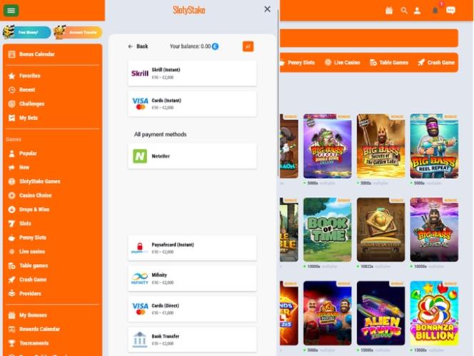 With a vibrant color palette of white backgrounds and orange accents, the website quickly grabs players’ attention through a simple yet visually pleasing, functional design. The user interface is highly intuitive and loads all sections and casino games quickly, with no significant downtime.