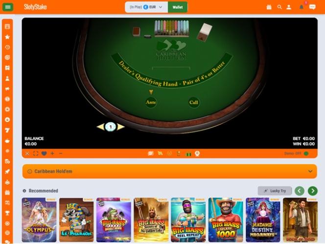 SlotyStake is a modern gambling site that welcomes players from Canada, Germany, Austria, Norway, Finland, and Denmark, with the sole purpose of offering them a massive lineup of casino games like real money slots, live dealers, table games, instant crash games, and various original releases, along with a plethora of exciting promotions and bonuses.