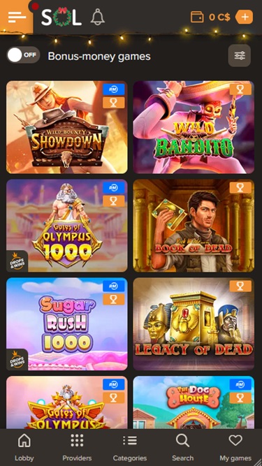 The account registration at Sol is a very simple procedure that allows players to step into the casino lobby almost instantly.