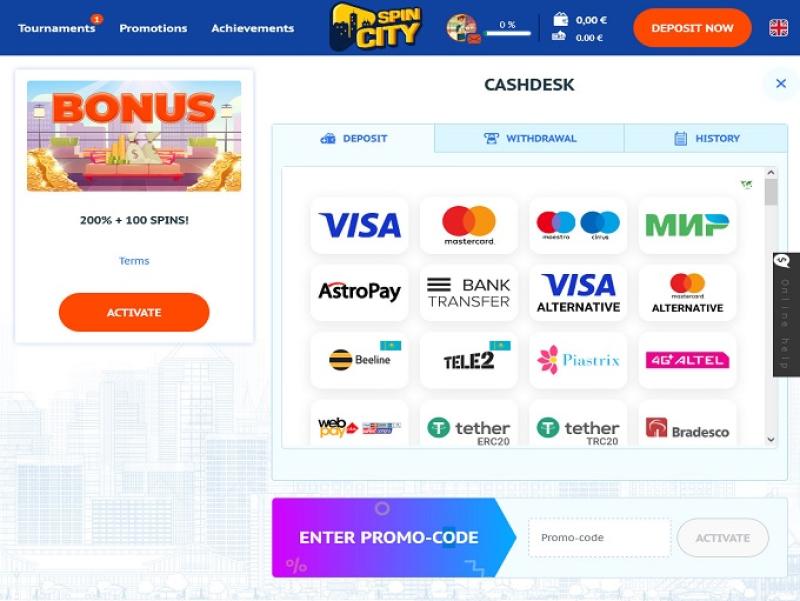 When it comes to bonuses and promotions, players can claim the 1st, 2nd, 3rd, and 4th deposit bonuses. There are also various tournaments and even an affiliate program where you can earn prizes by referring your friends to Spin City Casino.