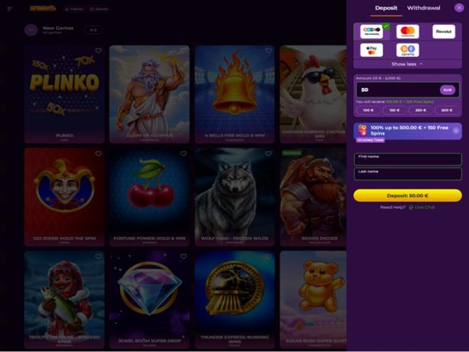 Established in 2025, Spinania is a well-rounded online casino that offers its players a diverse selection of casino games and sports betting options, including thousands of real-money slots, live dealers, table games, and instant-crash games. The brand accepts players from Germany, Belgium, and Spain, and invites them to dive into the expansive library of games and lucrative bonuses and promotions.