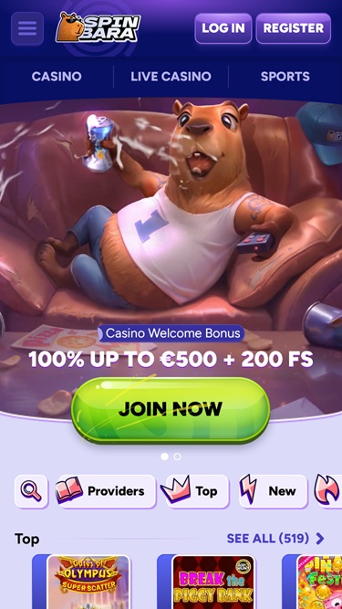 The moment you enter the site you will be welcomed by a fully animated Capybara chilling on his sofa and enjoying a cold fizzy beverage. This sets the tone of the whole site and emphasizes the notion of exploring all of the casino’s possibilities from the comfort of your home, which is a neat little detail.