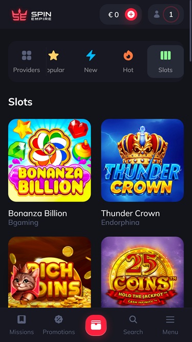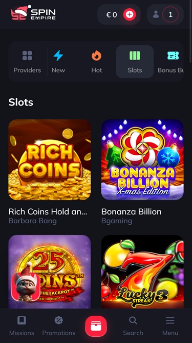 Make sure to try out some of the slot games recommended by the operator: Rich Coins Hold and Spin, Bonanza Billion, 25 Coins, Lucky Streak 3, Mental, Sizzling Sevens, Hot Volcano Bonus Buy, Buffalo’s Wealth, Brawlers Bar Cash Collect, Zeus The Thunderer Deluxe, Hit the Crown Hold and Spin, Wild West Trueways, Crown Coins, Young Wolf Song, 3 Hell Pots, Coins'n Fruits Spins, Grand Patron, Royalty of Olympus, Ultra Hot Sevens, Hell Hot 100, Candy Luck, Alien Tour, Enchantress Area, KA All Star Sports Day, Lucky Sakura Win Spins, Thunder Crown, Nine Tailed Fox, Noble Cat, Hit Coins 2 Hold and Spin, Submariner, Symphony Fantasia Lock 2 Spin, Ten Jin Matsuri, The Wolf of Wall Street, Chili Flame 7s Hold and Win, Bling Boyz, Champion Blitz Hold and Win, Fire Eagle Reborn, Gold Magnate, Bonus Mania Plinko, Reel Eldorado, Sticky Fruit Madness, Tombstone No Mercy, Ball & Ball, Futebol Fever, Shark Hunter, Sword of Khans – Reborn, Depths of Fortune, Dice Million…