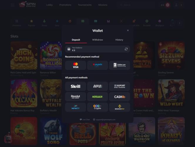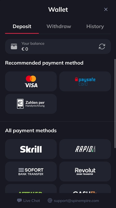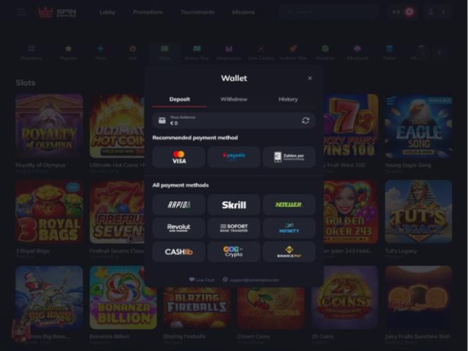 SpinEmpire uses the latest SSL encryption to protect players’ payments and sensitive data.