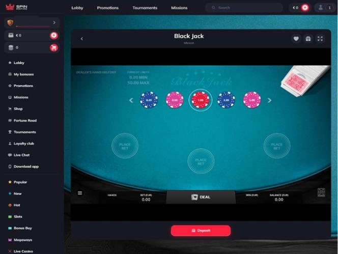 SpinEmpire Casino Blackjack (FunFair)Expand