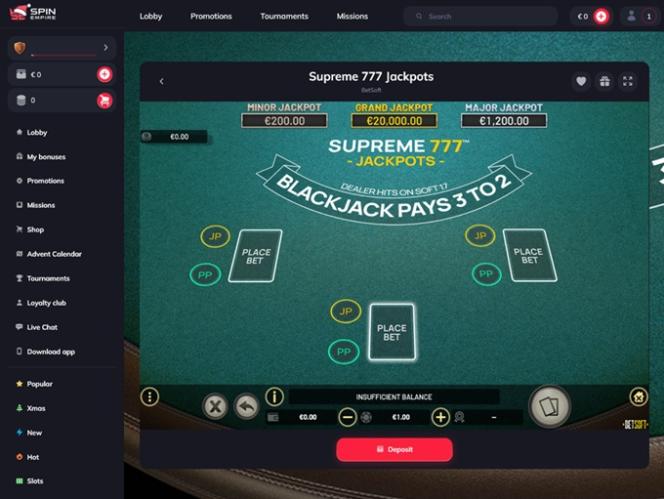 SpinEmpire Casino Blackjack (BetSoft)Expand