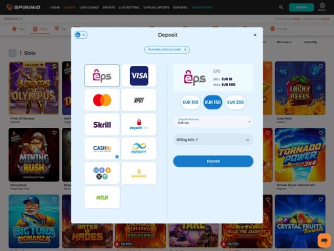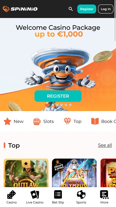 Established at the beginning of 2026, Spininio online casino welcomes players from Canada, Germany, Austria, and Switzerland among others, offering a massive lineup of casino games and sports betting options, including thousands of real money slots, live dealers, table games, and crash games, all while featuring a competent promotional plan with bonuses, promotions, and tournaments.
